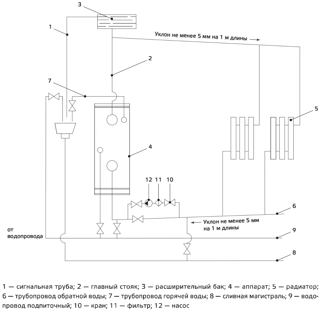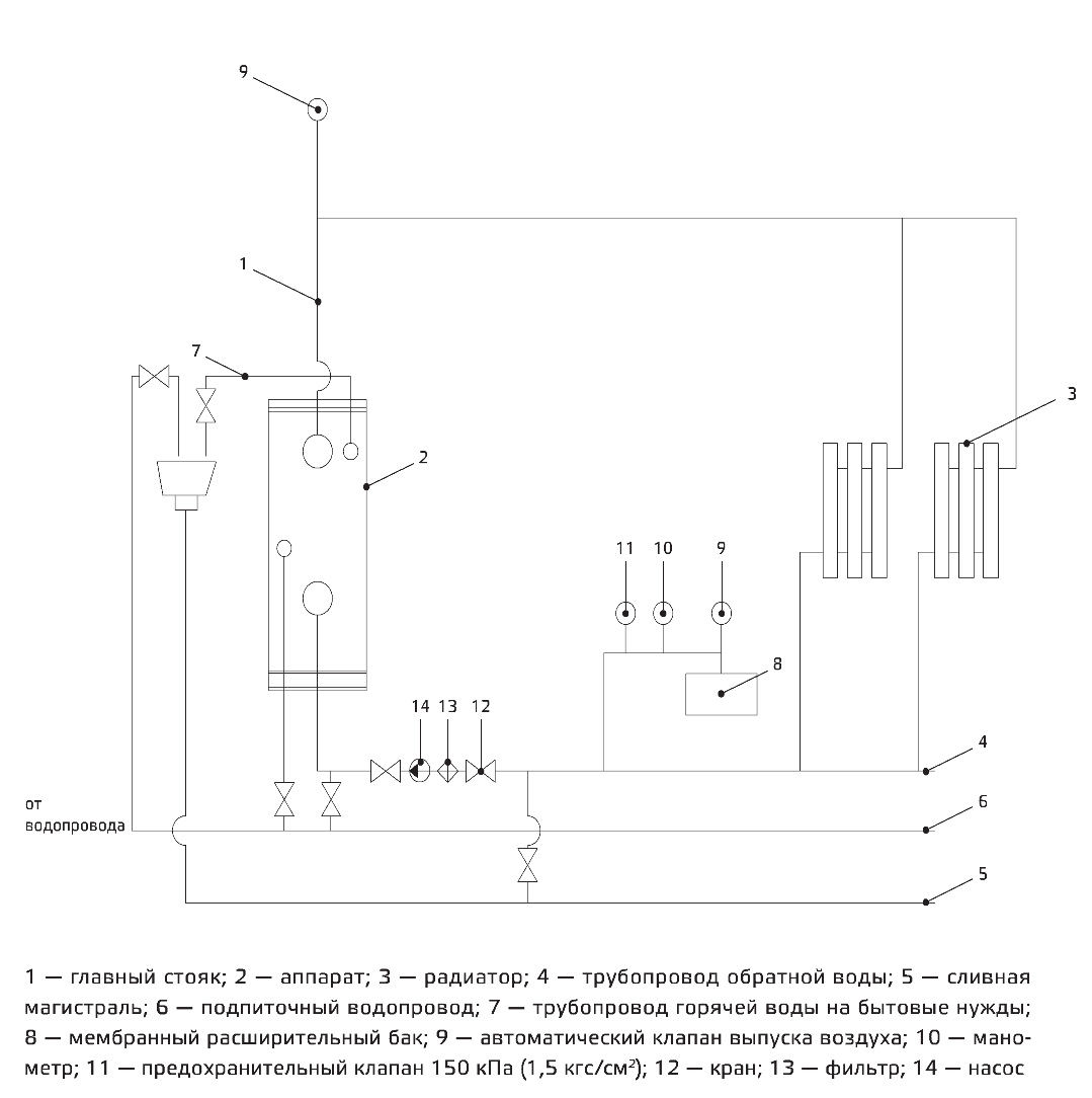 Примерная закрытая схема системы отопления с использованием аппарата ARTU АОГВк-17,4 на