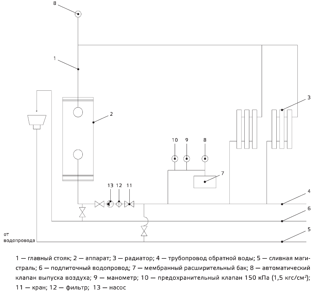 Примерная закрытая схема системы отопления с использованием аппарата Сиберия 35