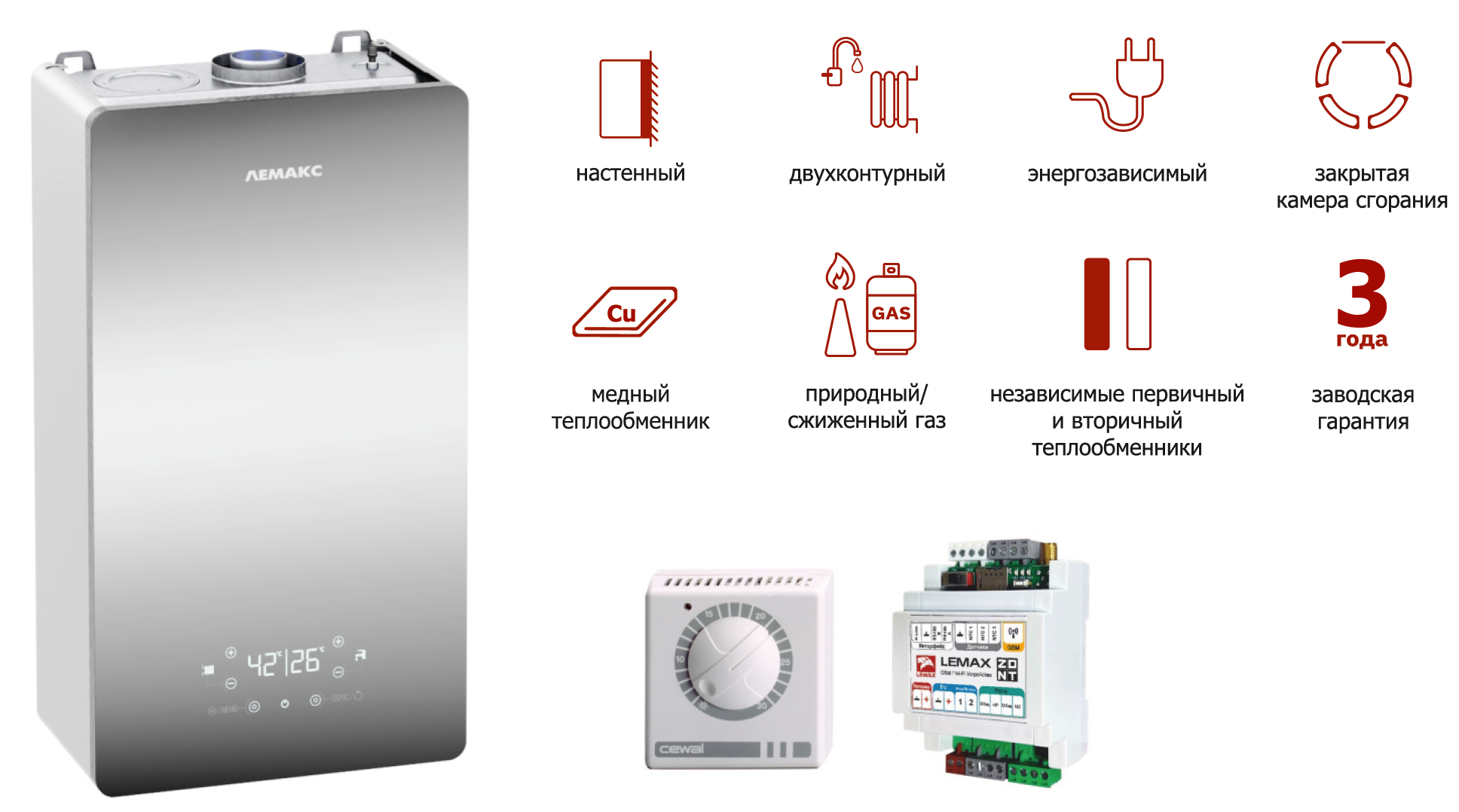 Новейшая серия настенные газовые котлы Лемакс серии «Prime Pro» представляют собой усовершенствованные модели отопительного оборудования, специально адаптированные к российским условиям эксплуатации. Комплектация котлов рассматриваемой серии включает в себя передовые элементы европейского производства, что гарантирует качество и высокую надежность всех агрегатов.