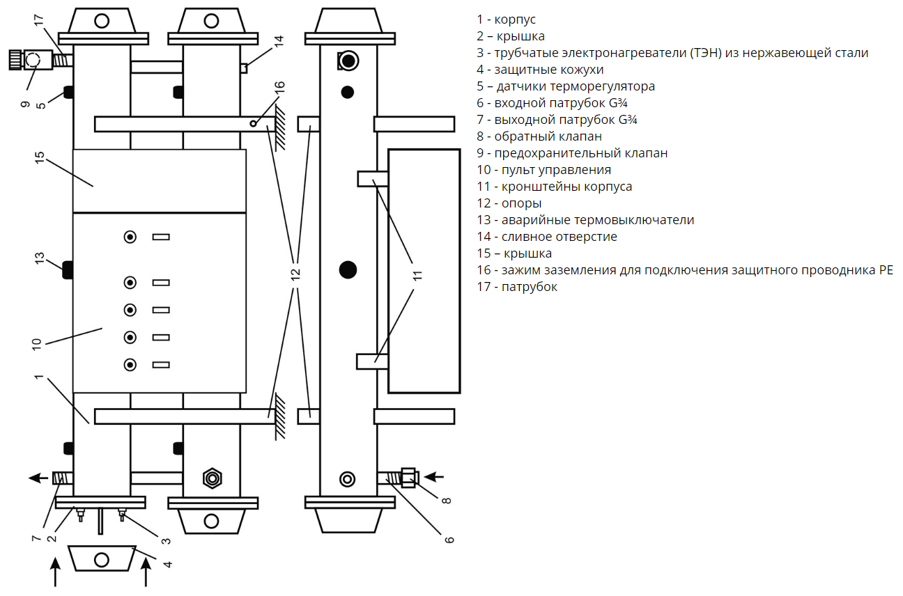 - ТЭНы выполнены из нержавеющей стали;